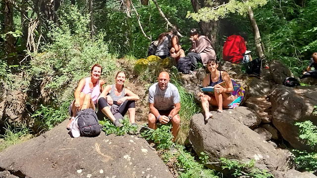 Pues sí, hoy tocaba la excursión larga, y la verdad es que se han portado como jabatos, han sido 7 horas de caminata, con desnivel, y con mucho calor, pero han aguantado muy bien. hay que tener en cuenta que tenemos que añadir el camino del camping al pueblo que ya son 45 min y ciento y pico metros de desnivel, pero al menos la senda era sombreada y bastante agradable.